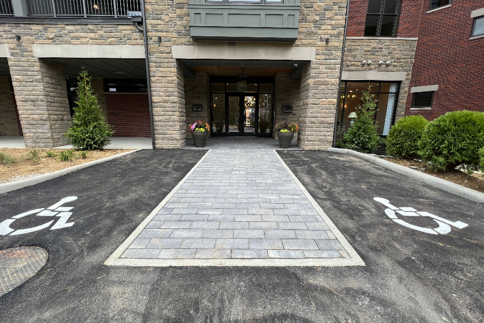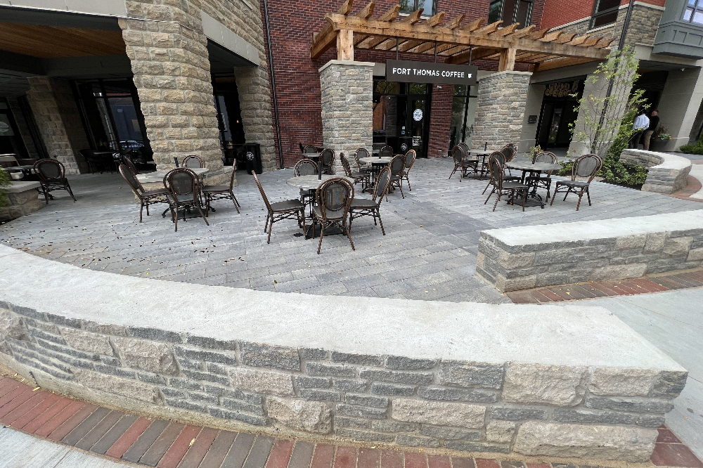 Highland One of Fort Thomas, Kentucky wanted an install of plants, mulch, and hardscape in the area of their new development. Hardscape turned out great and really leveled up the curb appeal.