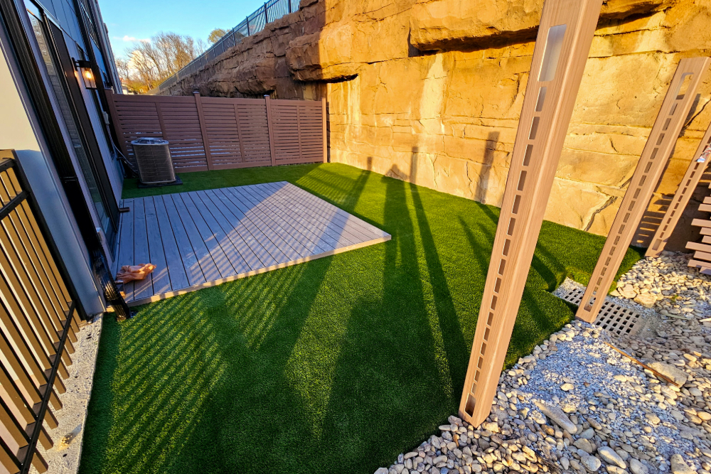 We completed an artificial turf install for a home owner in Newport, Kentucky who did not want the hassle associated with natural turf.